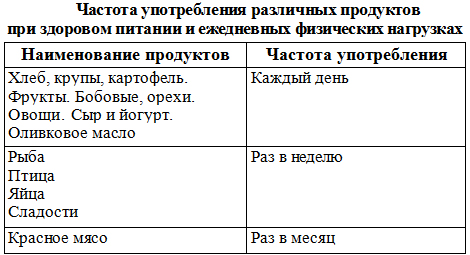 При составлении ежедневного меню можно использовать рекомендуемую частоту употребления различных продуктов, указанную в таблице ниже.